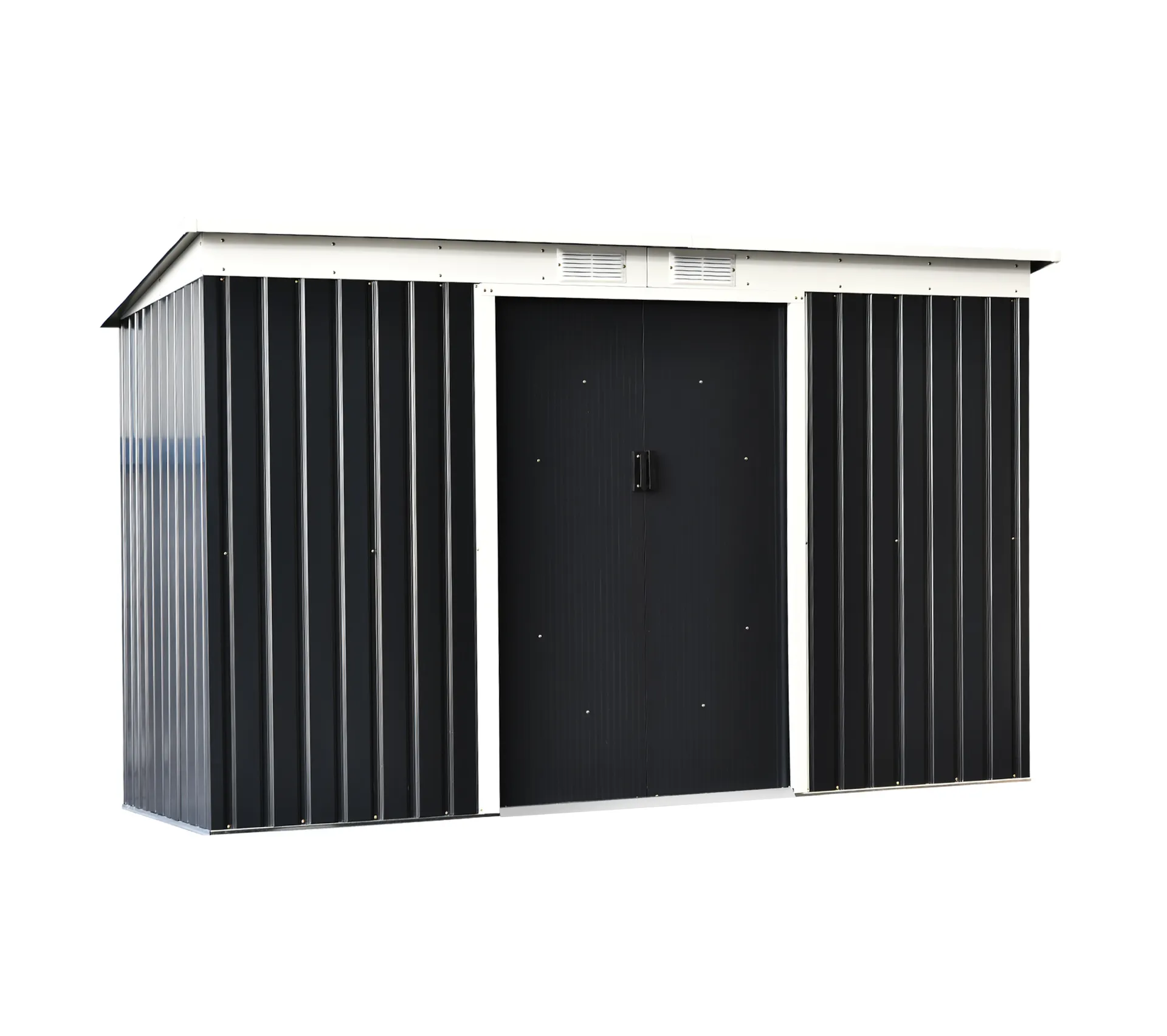 Die anthrazitgraue Farbe kombiniert mit einer robusten Struktur lässt den Schuppen harmonisch in Holzgärten, Gartenchalets, Pergolen, Gartenmöbelsets oder unter Wandvordächern einfügen. Die Stahlblechkonstruktion, verstärkte Wände und galvanisierte Oberfläche sorgen für optimale Widerstandsfähigkeit gegen Witterungseinflüsse, Korrosion und UV-Strahlen. Der Boden (nicht im Lieferumfang) kann auf einer Betonplatte verlegt werden, um maximale Stabilität zu gewährleisten, und der Stahlrahmen garantiert lange Lebensdauer und Robustheit.