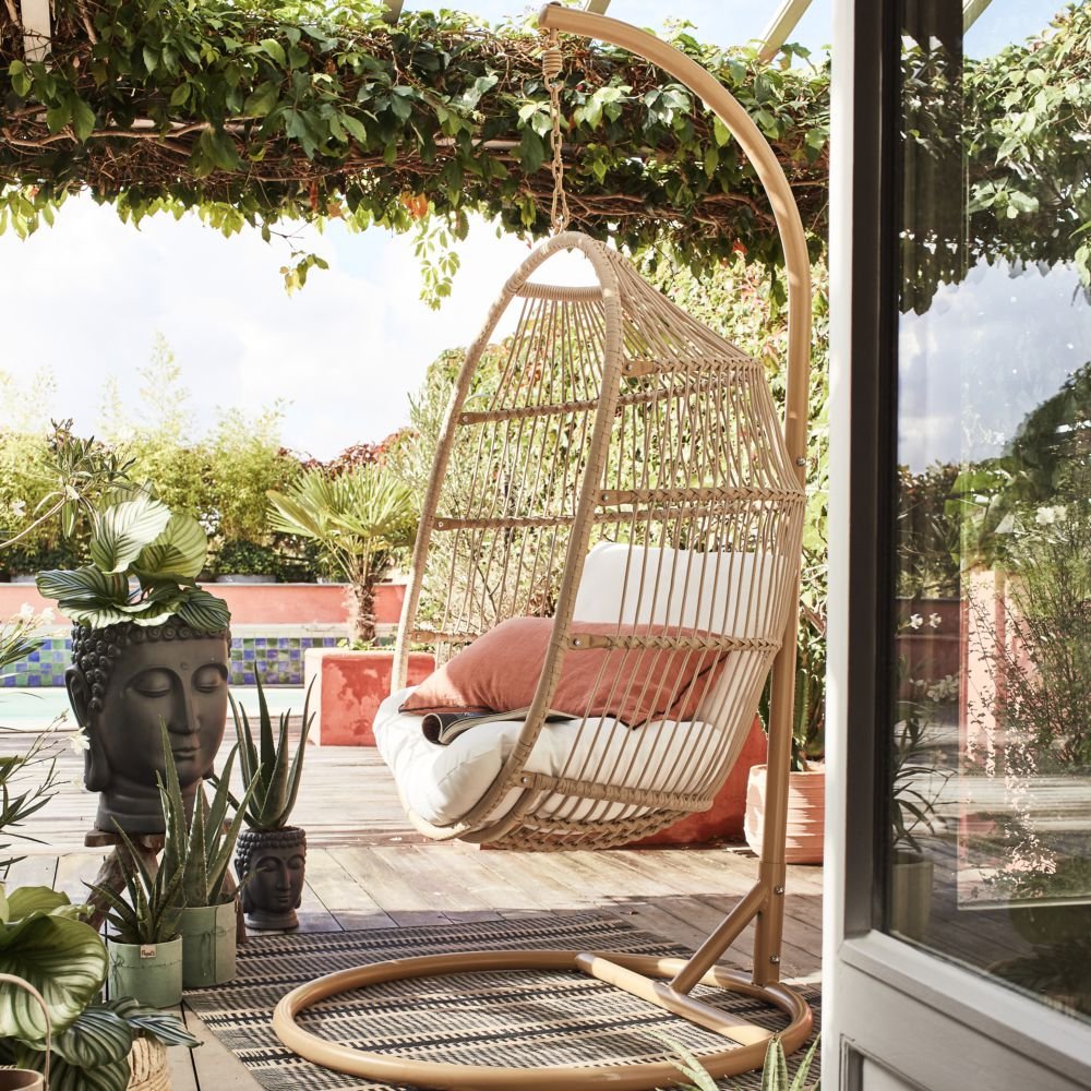 Venez découvrir notre fauteuil suspendu Poket. En effet, il allie à la fois la modernité et le confort. Grâce à son cordage et à sa forme d’œuf , il donne un côté design et contemporain à ce transat. Ce mobilier s’insérera parfaitement dans votre extérieur et administrera une touche de détente. Très utile, vous pouvez le plier et le ranger facilement. Il est léger et prend peu de place. Sa structure est fabriquée en acier, pour une grande durabilité. C’est une matière anti-corrosion, cet équipement convient donc près de la mer. Ce relax supporte les intempéries et les rayons de soleil. Grâce à la matière polyester présente dans le coussin, ce fauteuil est très confortable. Vous pouvez lézarder ou vous reposer pleinement. De plus, dans la même gamme, vous pouvez trouver le hamac suspendu.