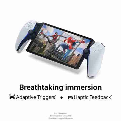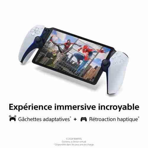 Jouez avec votre console PS5 par Wi-Fi à la maison en utilisant le lecteur à distance PlayStation Portal. Profitez d’une immersion à couper le souffle avec les fonctions de la manette sans fil DualSense et le superbe écran ACL de 8 po qui affiche les moindres détails de vos jeux préférés.