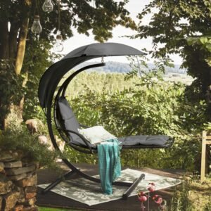 Craquez pour sa structure en finition époxy revêtue de résine imitation rotin qui invite à l’évasion et au voyage. Installé au creux de son coussin moelleux, vous n’aurez plus envie de quitter ce fauteuil suspendu d’extérieur.